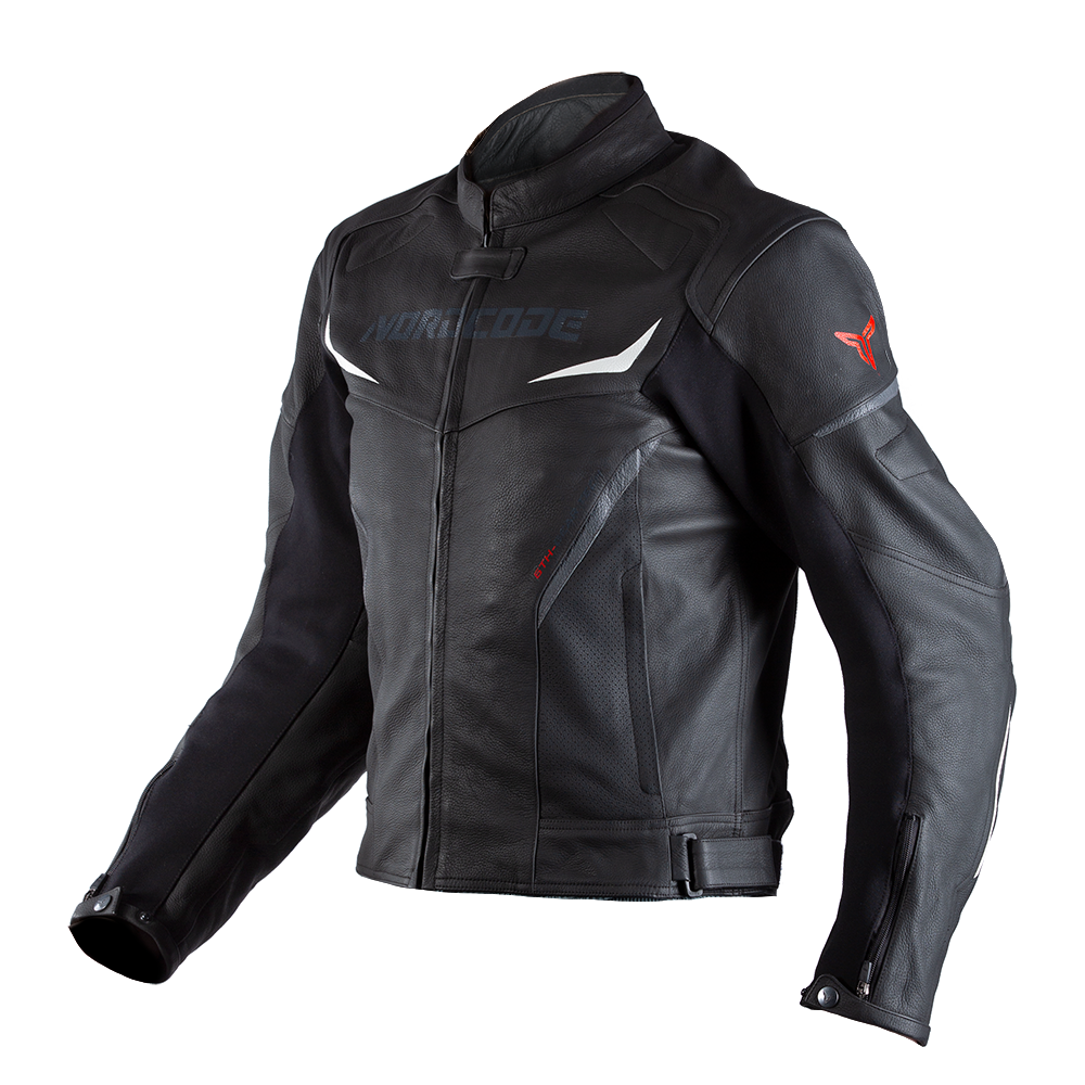 Σπορ δερμάτινο μπουφάν μοτοσικλέτας με αφαιρούμενη θερμική επένδυση και μικρή αεροδυναμική καμπούρα.