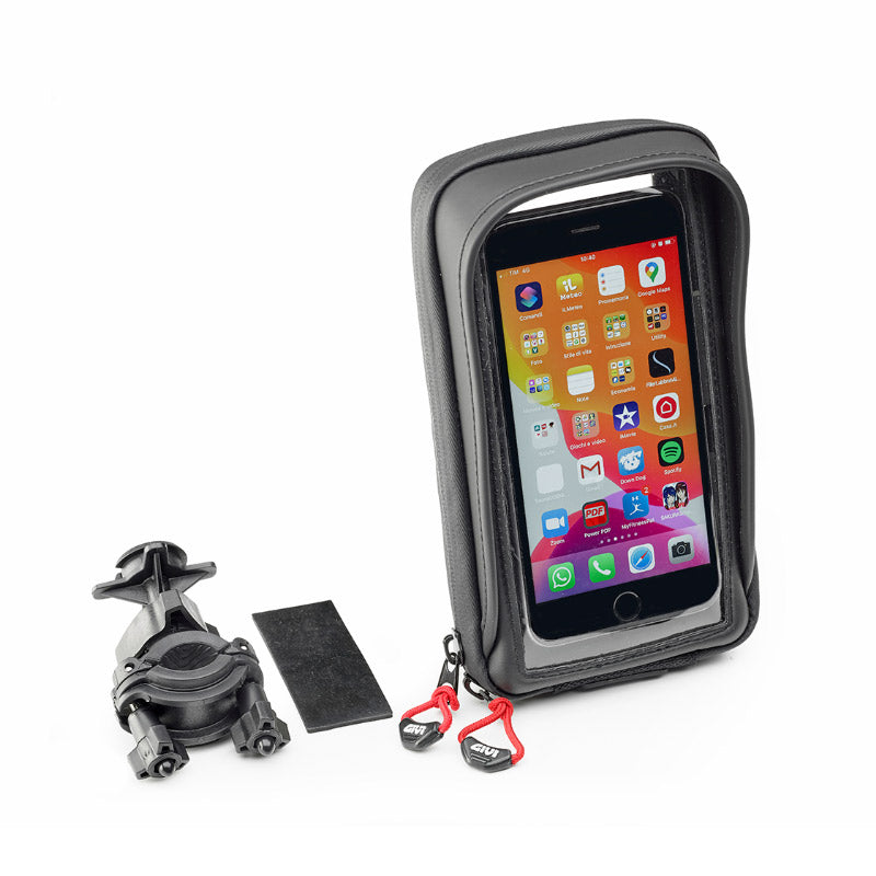Χάρη στο σύστημα στήριξης, που έχει σχεδιαστεί και κατοχυρωθεί με δίπλωμα ευρεσιτεχνίας από την GIVI, η τοποθέτηση και αφαίρεση της θήκης του smartphone είναι εξαιρετικά απλή και γρήγορη, σε λίγα μόνο δευτερόλεπτα. Η χαλάρωση της λαβής στο στήριγμα μπορεί να προσαρμόσει τη θέση της θήκης του smartphone σύμφωνα με τις συγκεκριμένες απαιτήσεις του αναβάτη, ανά πάσα στιγμή και χωρίς την ανάγκη εργαλείων.