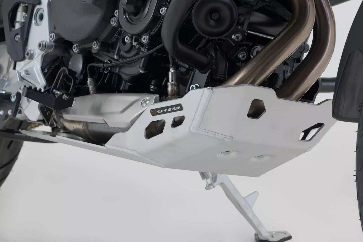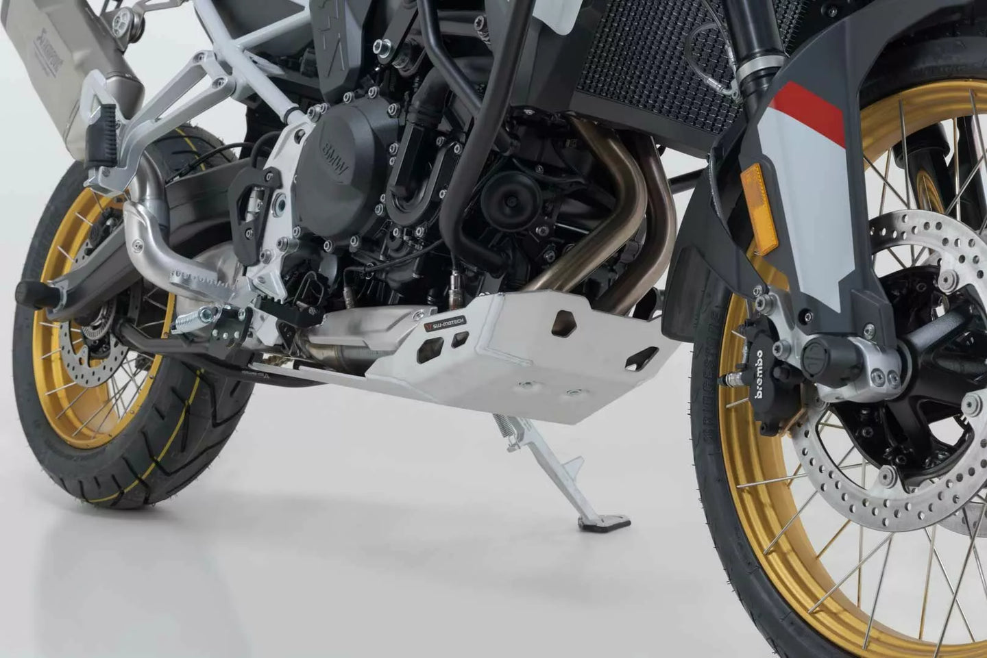 Ποδιά προστασίας κινητήρα και λαιμού εξάτμισης από την Γερμανικής εταιρείας SW-Motech κατασκευασμένη από ενισχυμένο αλουμίνιο με αντοχή στα χτυπήματα.