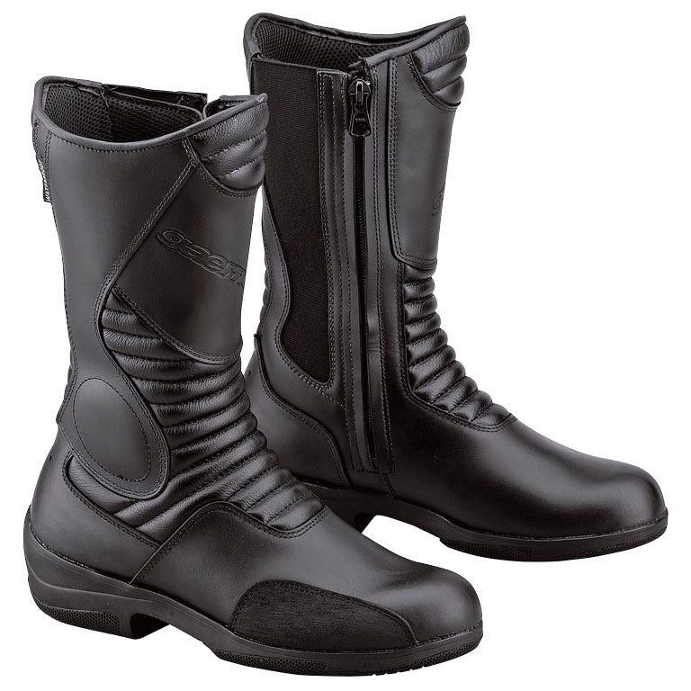 Δερμάτινες μπότες σχεδιασμένες αποκλειστικά για γυναίκες. • Εξωτερικά δέρμα Full Grain με ελαστικά ένθετα για μεγαλύτερη άνεση και καλύτερη εφαρμογή • Επένδυση με μεμβράνη Drytech, υλικό που παρέχει 100% προστασία από το νερό ενώ παράλληλα επιτρέπει την αναπνοή του ποδιού. • Νέα αντιολισθητική ελαστική σόλα. • Προστασίες στον Pro-Tech αστράγαλο • Κλείσιμο με φερμουάρ • Ειδική ενίσχυση στα δάκτυλα.