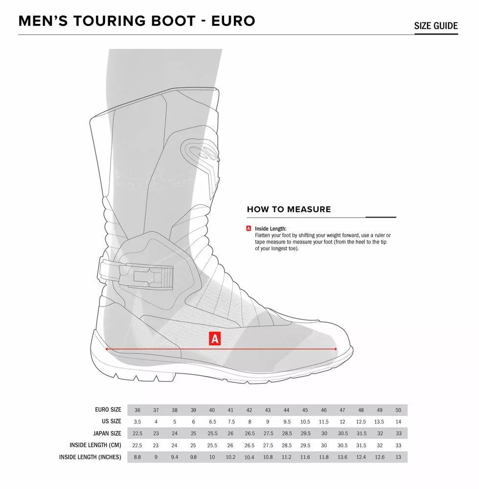 Οι Touring μπότες της Alpinestars, WEB, από ειδικά επεξεργασμένο υψηλής ποιότητας δέρμα (full-grain), είναι πλήρως αδιάβροχες χάρη στην μεμβράνη Gore-tex® που φέρουν στο εσωτερικό τους. Εξοπλισμένες με σειρά προστατευτικών και ενισχύσεων στα επίμαχα σημεία, ειδική στήριξη στο σημείο των αστραγάλων και ανατομική καμάρα στο εσωτερικό του πέλματος σας παρέχουν επιπρόσθετη σταθερότητα στο περπάτημα. Η σόλα είναι ενισχυμένη, συμπαγής, ελαστική και αντιολισθητική ενώ το κλείσιμο γίνεται με Velcro® και φερμουάρ για απόλυτη εφαρμογή και ασφάλεια. Στρατηγικά τοποθετημένα διακριτικά ανακλαστικά σας προσφέρουν ασφαλή νυχτερινή οδήγηση.