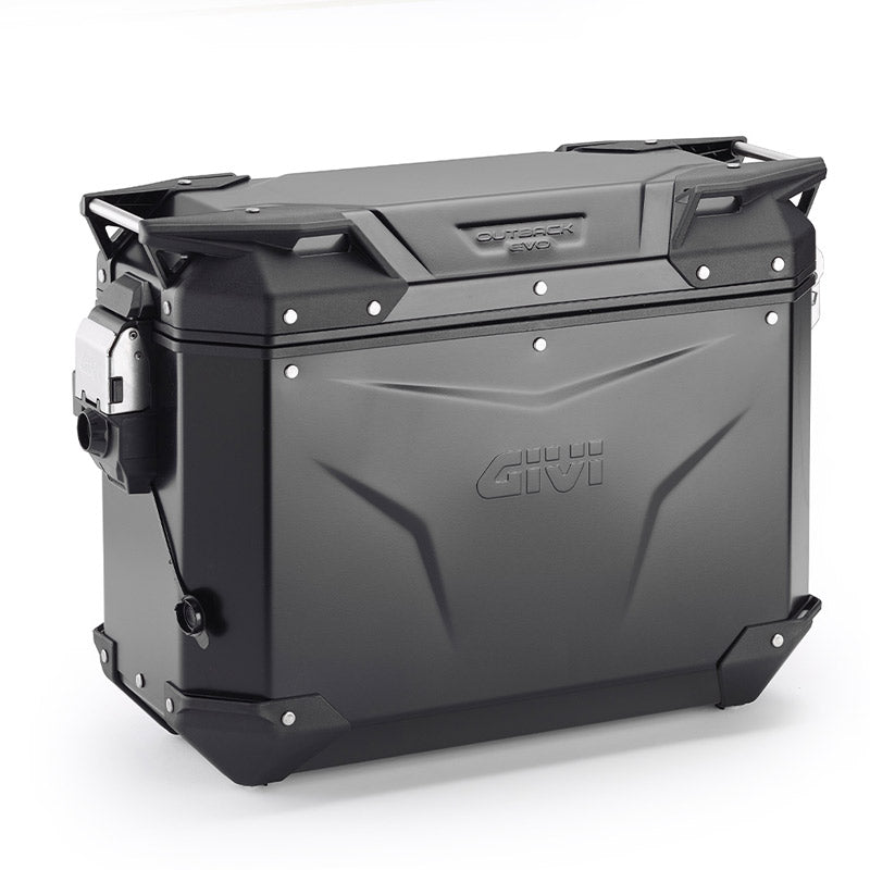 Κατασκευασμένη από φυσικό αλουμίνιο, η πλαϊνή βαλίτσα Trekker Outback EVO SMART διατίθεται σε εκδόσεις για τη δεξιά και την αριστερή πλευρά, οι οποίες μπορούν να αγοραστούν είτε μεμονωμένα είτε ως ζευγάρι.