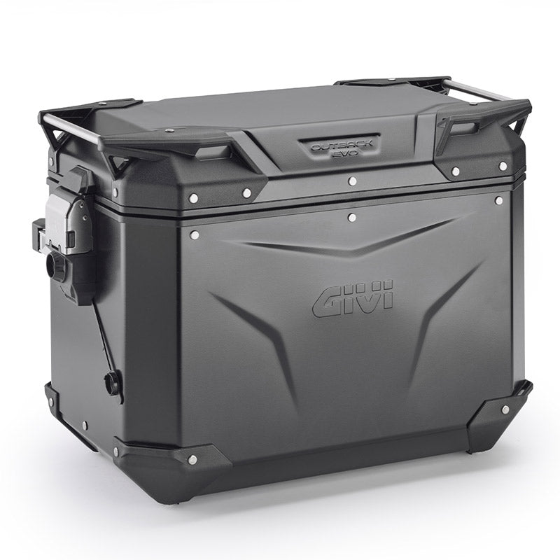 Κατασκευασμένη από φυσικό αλουμίνιο, η πλαϊνή βαλίτσα Trekker Outback EVO SMART διατίθεται σε εκδόσεις για τη δεξιά και την αριστερή πλευρά, οι οποίες μπορούν να αγοραστούν είτε μεμονωμένα είτε ως ζευγάρι.