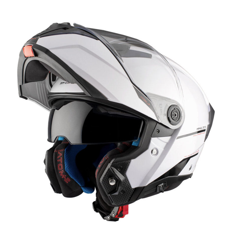 Το MT Atom 2 SV είναι ένα flip-up κράνος με αεροδυναμική σχεδίαση, ιδανικό για περιηγήσεις. Κατασκευασμένο από HIRP, ένα πολύ ανθεκτικό υλικό, διαθέτει μεγάλη αντιχαρακτική ζελατίνα που προσφέρει ευρύ οπτικό πεδίο, συμβατή με Pinlock® (δεν περιλαμβάνεται), εσωτερική φυμέ ζελατίνα που εγγυάται σωστή προστασία από τις ακτίνες UV και σύστημα εξαερισμού με τεχνολογία MT-AFCS που εγγυάται σωστή ροή αέρα.