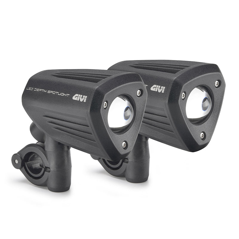 Οι νέοι βοηθητικοί προβολείς της GIVI διαθέτουν μαύρη βαμμένη δομή αλουμινίου, με πρακτική και εύχρηστη σχεδίαση και τοποθετούνται εύκολα σε όλα τα προστατευτικά κινητήρα με διάμετρο μεταξύ 21 και 25 mm.