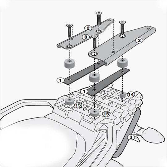 SR3105M Σχάρα για μηχανές SUZUKI DL1000 V-STROM (14). Ταιριάζει με βαλίτσες Givi MONOLOCK®. Περιλαμβάνει πιάστρα MONOLOCK®.Τιμή €123,60Τιμή €123,60 -